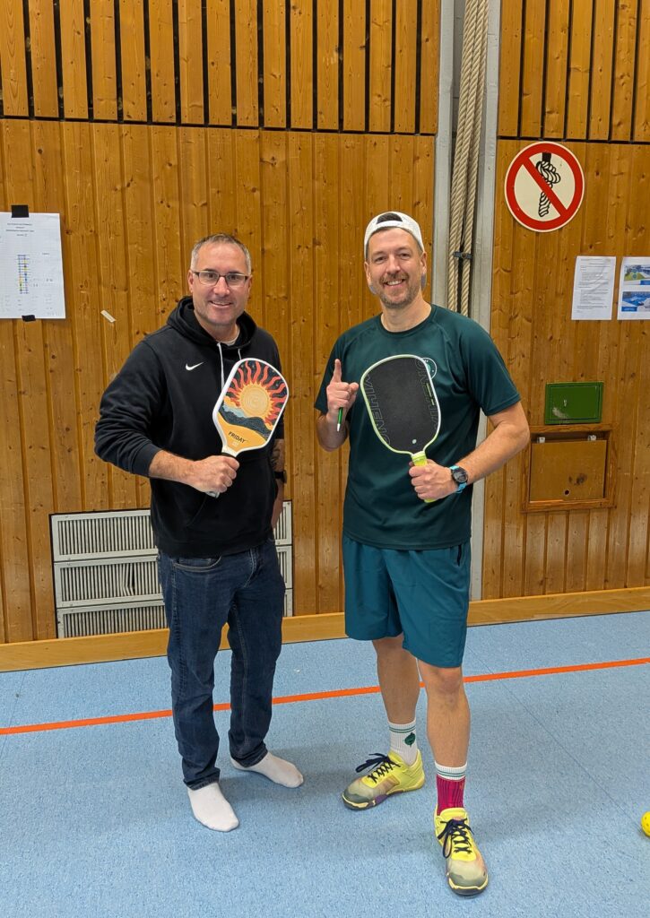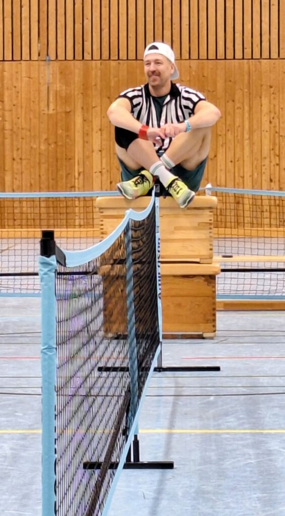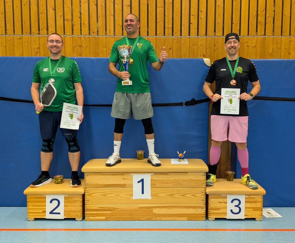 Unser Vorstandsvorsitzender Geo konnte dabei, wie weitere zahlreiche Zuschauer, eine enge Vorrunde beobachten, bevor es auch hier im Anschluss in die KO-Phase ging.Vereinsmeister des FSC Kelsterbach Pickleball im Doppel wurden Chris B. und Daniel G.Für Chris war es eine gelungene Revanche für den Vortag, hieß es am Ende des Finales 21-17 und 21-19 gegen Simon S. und seinen Finalgegner vom Vortag Inan Y.Die stehenden Ovationen nach dem letzten Punkt zeigten, dass wir hier wohl den besten Pickleball gesehen haben, den Kelsterbach je erlebt hat.